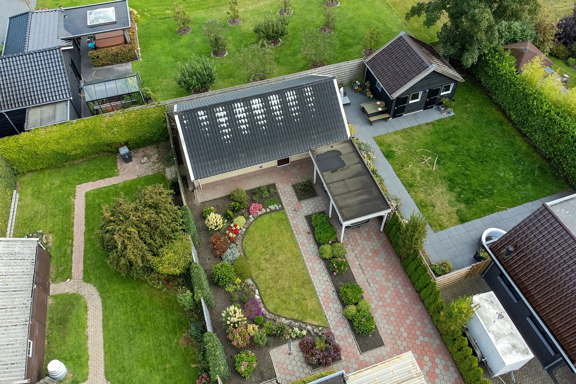 Rondom de woning ligt een ruime tuin met veel privacy en mogelijkheden. De achtertuin is diep en biedt voldoende plek voor een terras, speeltoestellen of een groentetuin. Hier is altijd wel een zonnig of juist beschut plekje te vinden. De tuin is praktisch ingericht en biedt volop ruimte voor buitenleven en ontspanning.